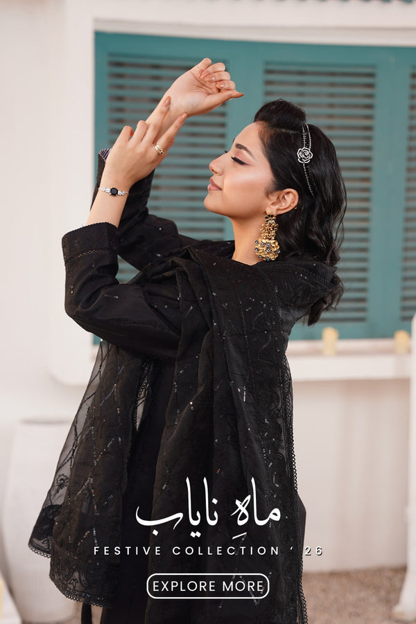 Embroidered Midnight Chiffon 4PC Ensemble with Sheer Sleeves