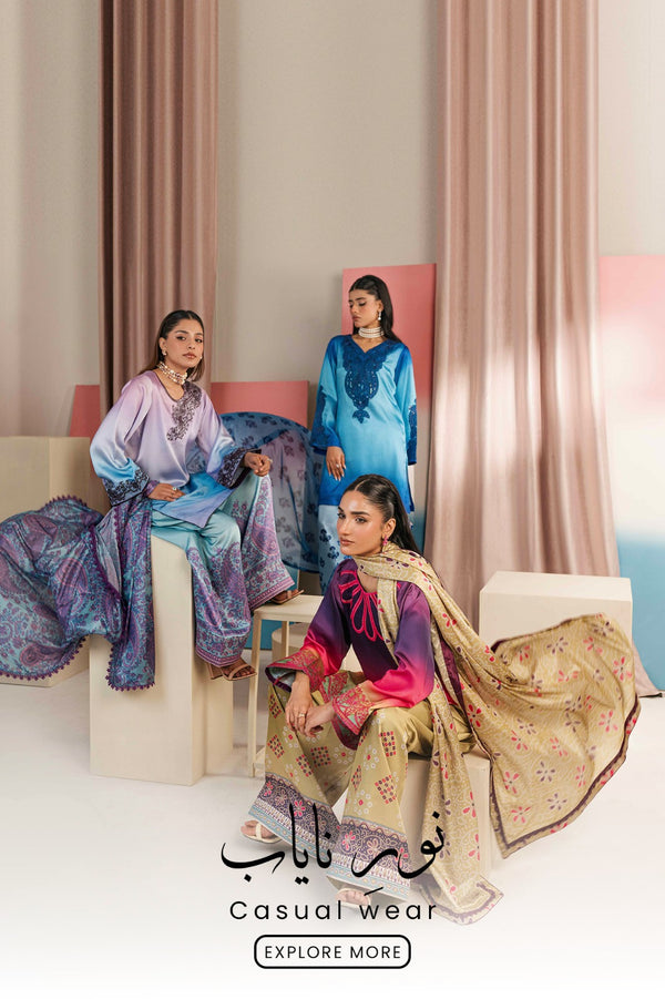 Sky Breeze Embroidered Silk 3PC Suit with Printed Farshi Shalwar & Dupatta