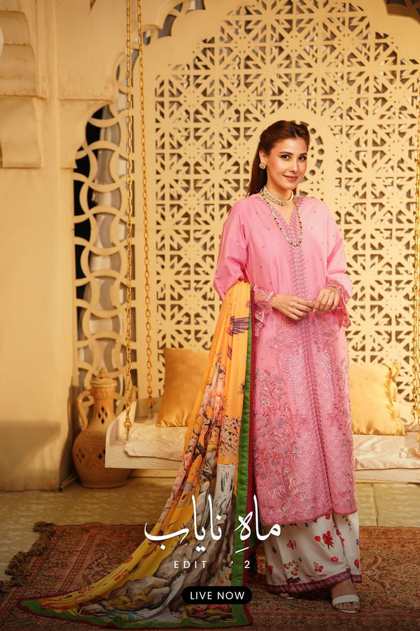 Mirage Embroidered Lawn with Silk Printed Dupatta 3PC Stitched Suit