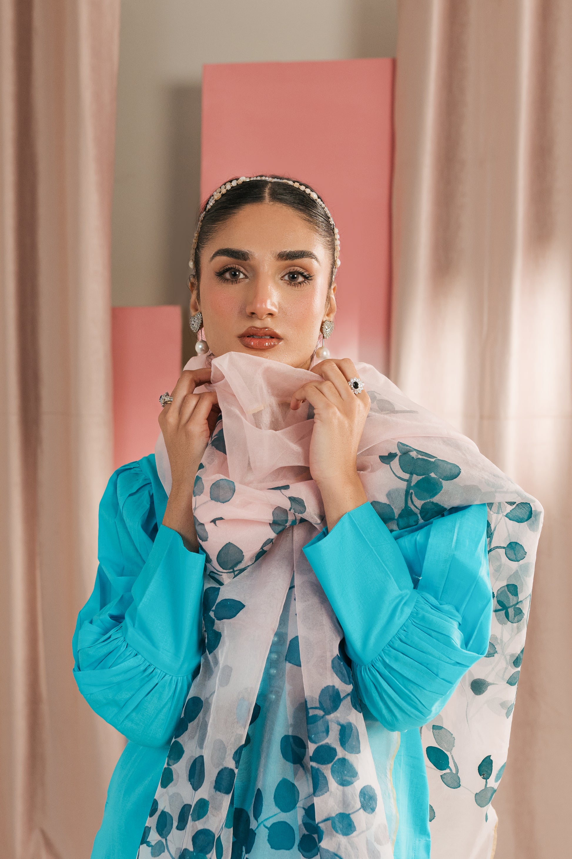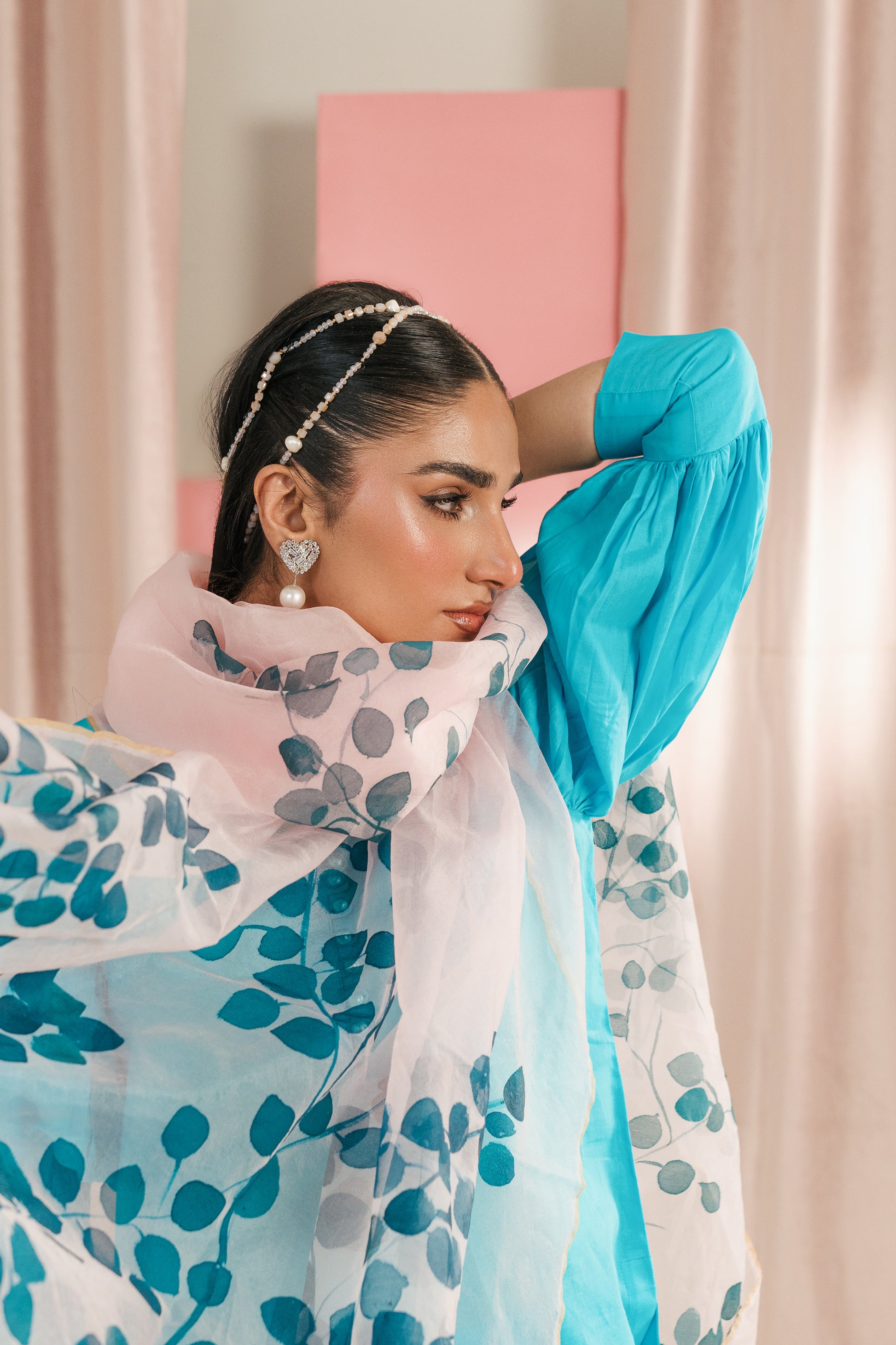 • Dupatta (sold separately): A delicate handcrafted chiffon dupatta, beautifully adorned with hand-painted botanical motifs, adding an artistic layer of finesse