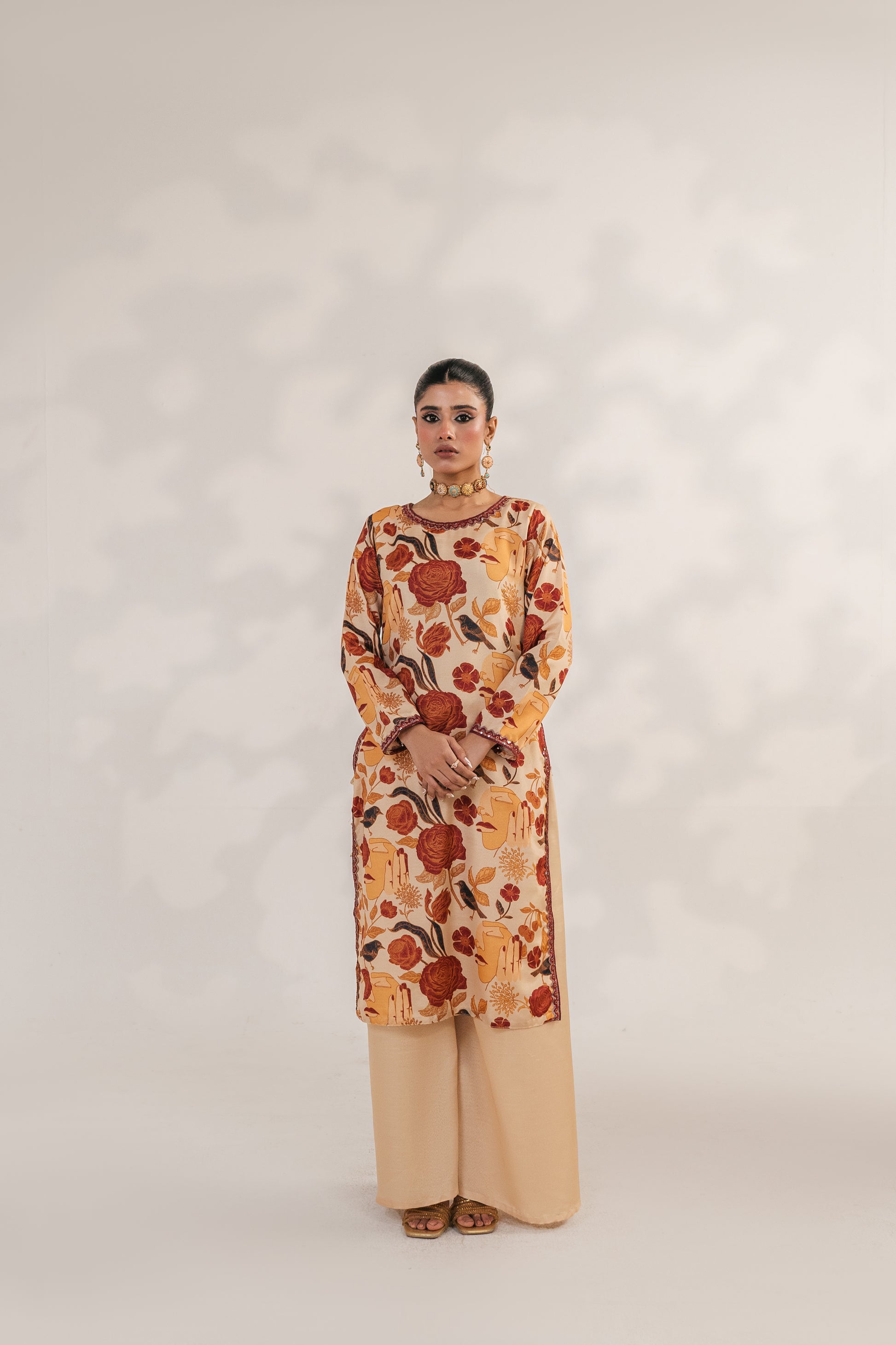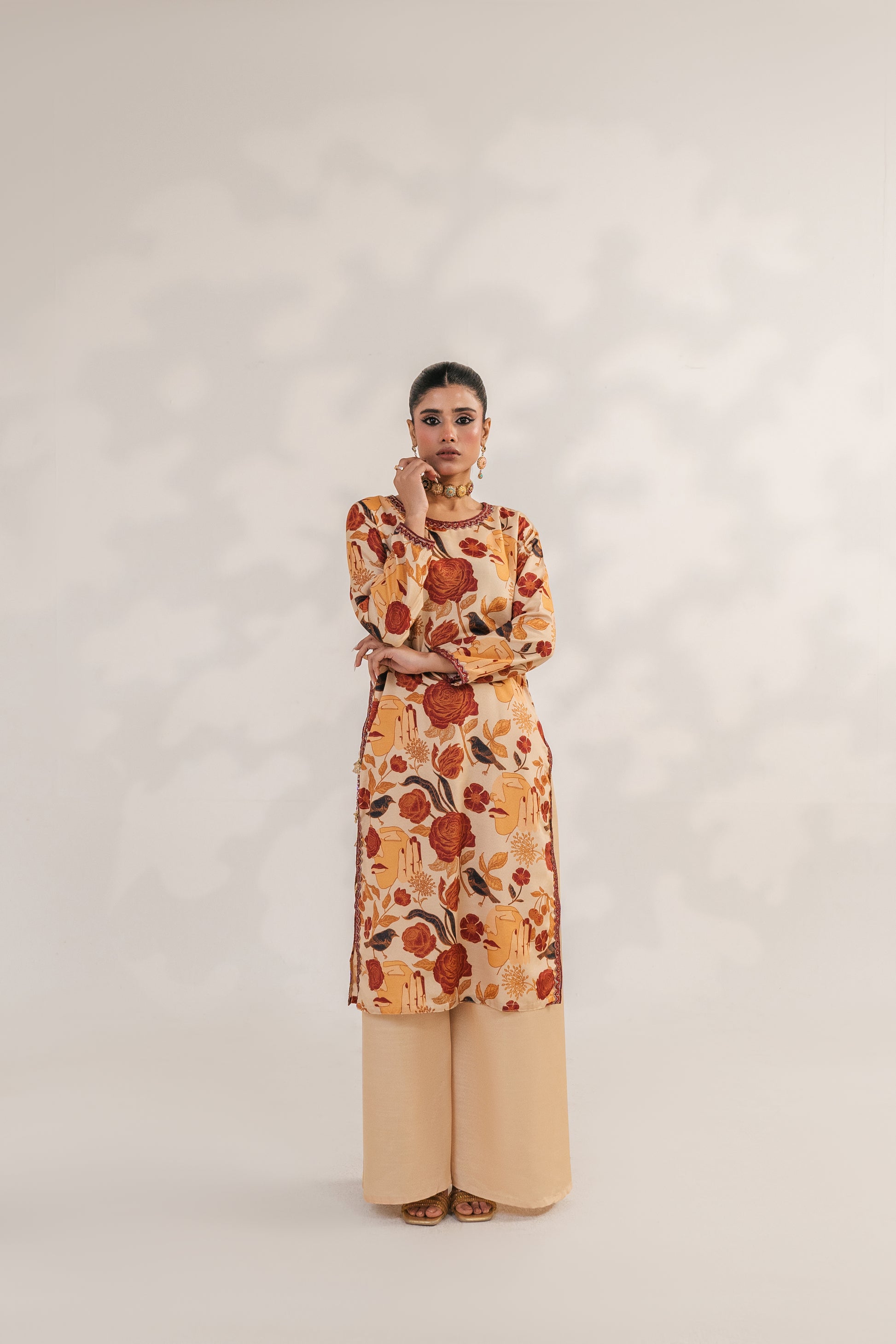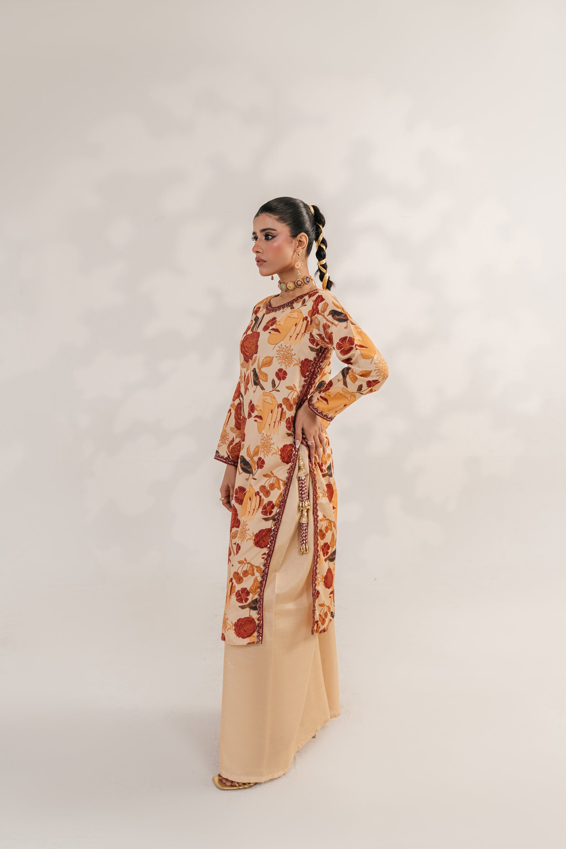 • Trouser: Wide-leg lawn trousers in a complementary solid tone, offering comfort and movement